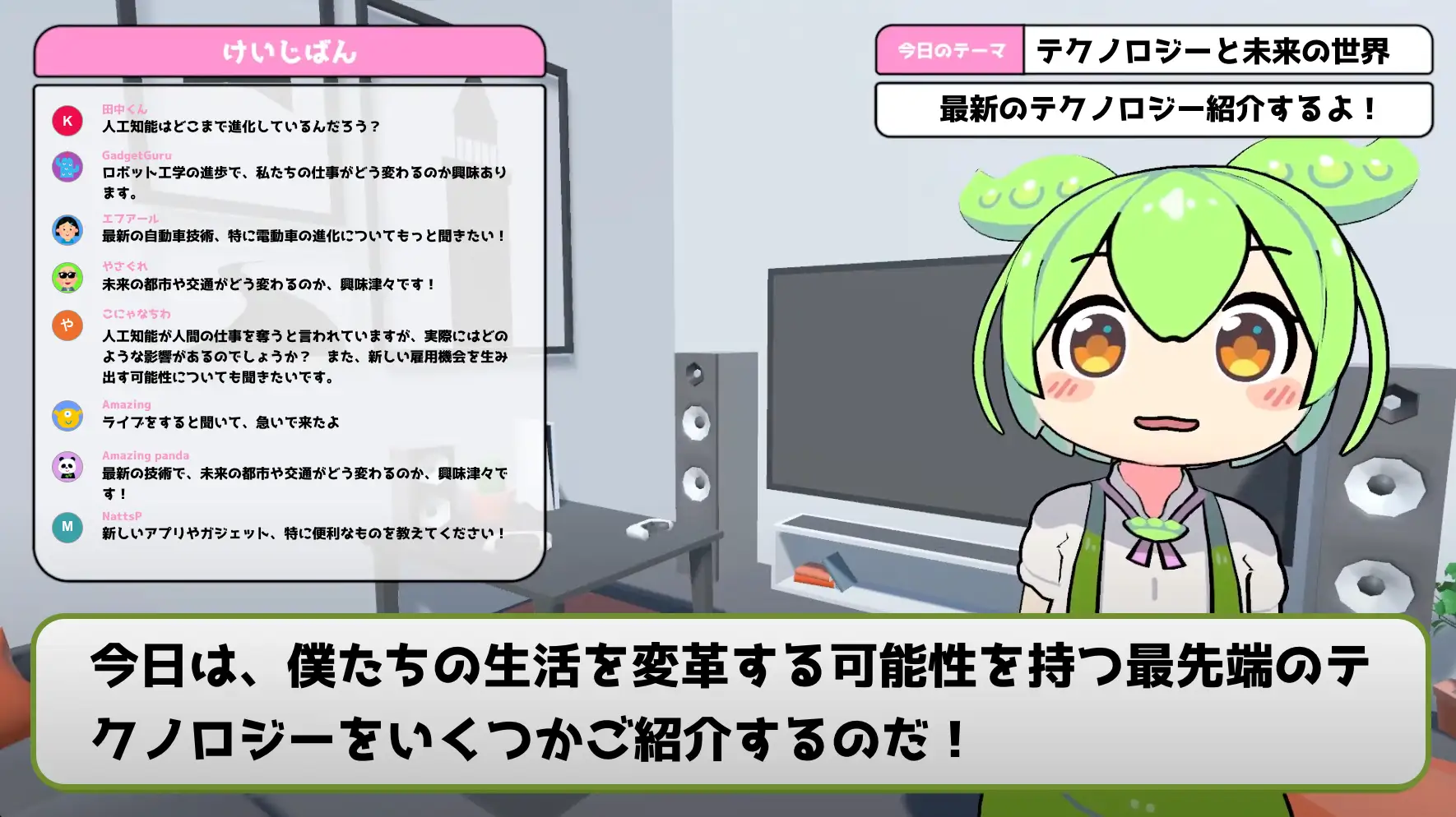 マルチエージェント技術を活用して、AIキャラクターが自動的に番組を進行し、視聴者とのリアルタイムな交流を可能にする画期的なライブ配信体験を提供します。